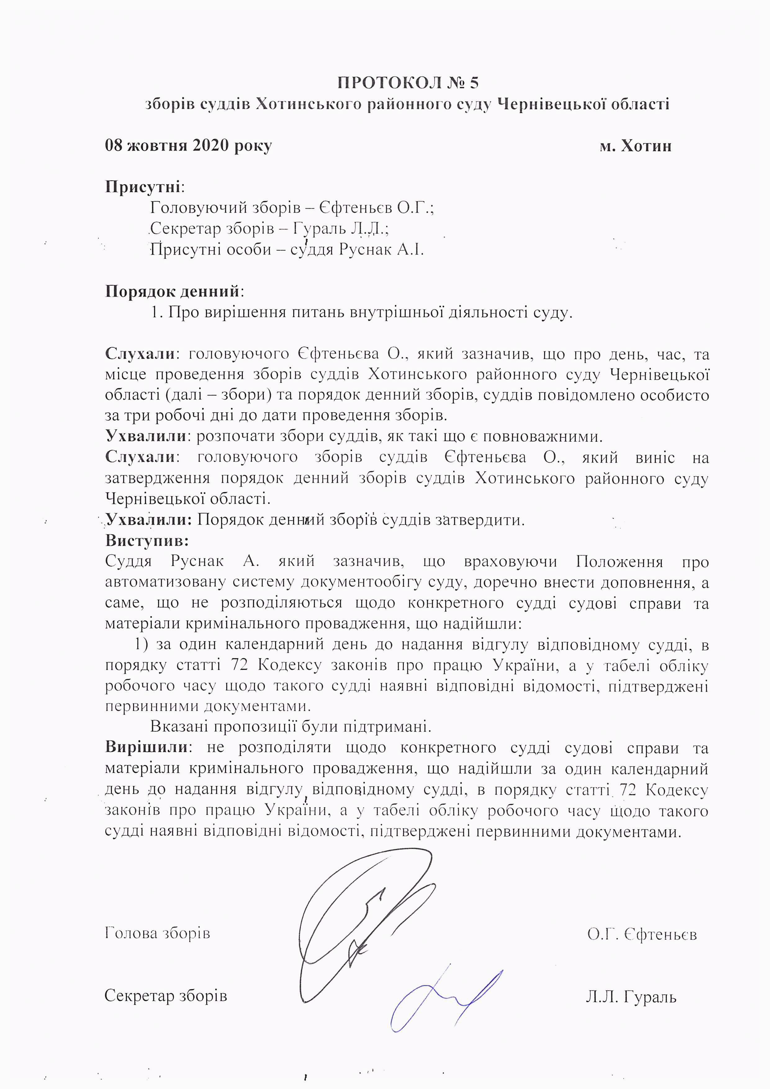 Протокол зборів суддів № 5 від 08 жовтня 2020 року