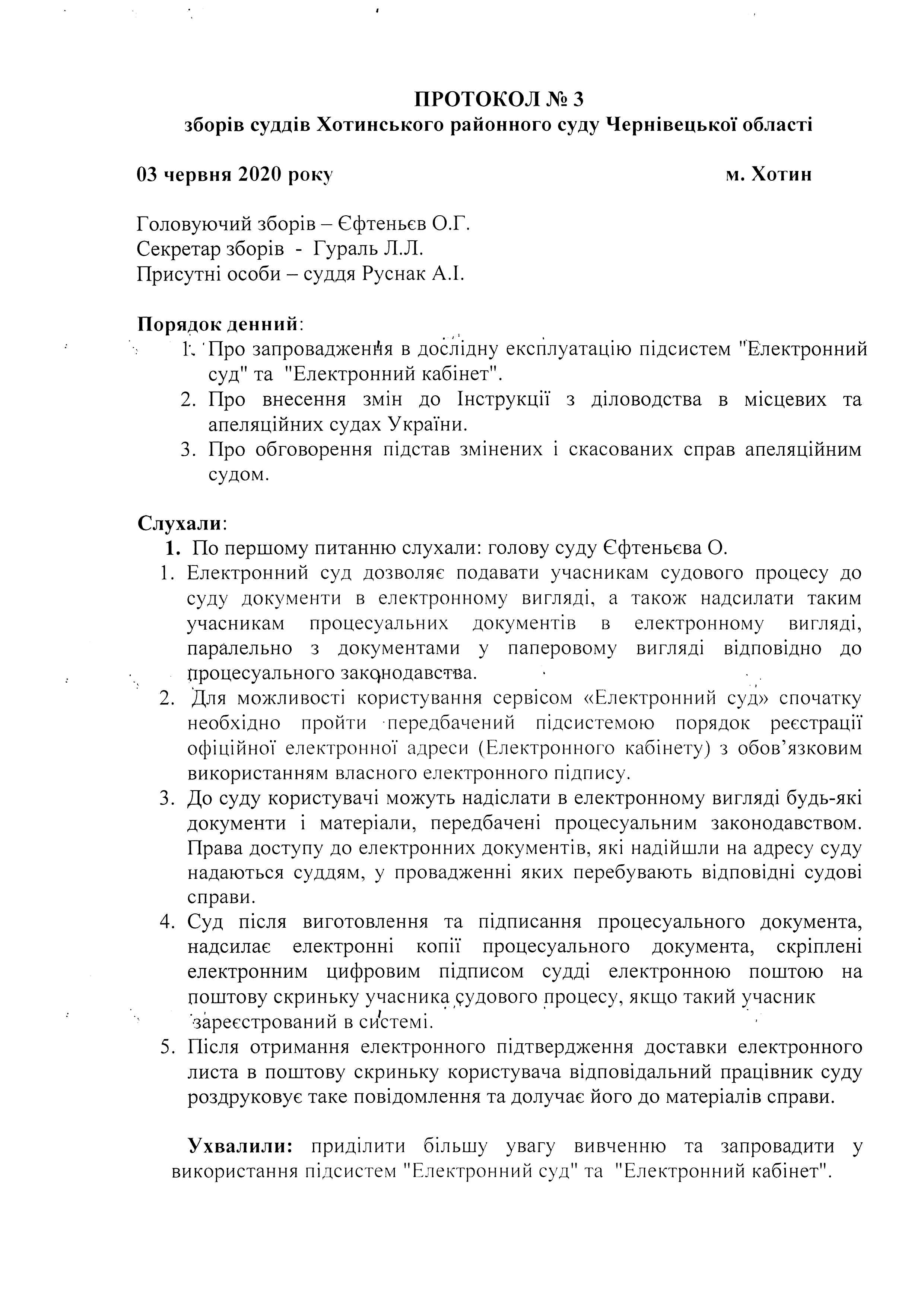 Протокол зборів суддів від 03 червня 2020 року