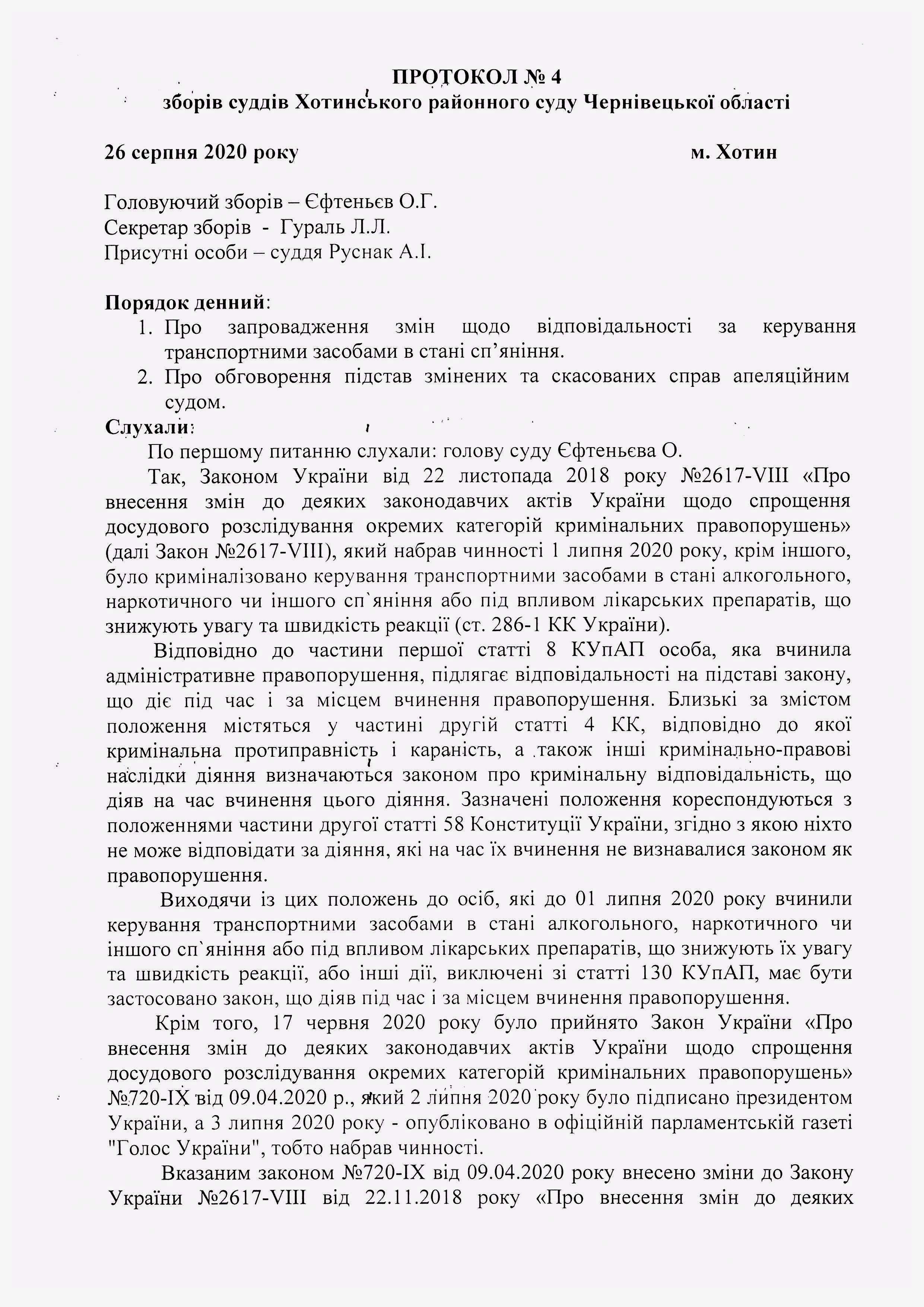Протокол зборів суддів №4 від 26 серпня 2020 року