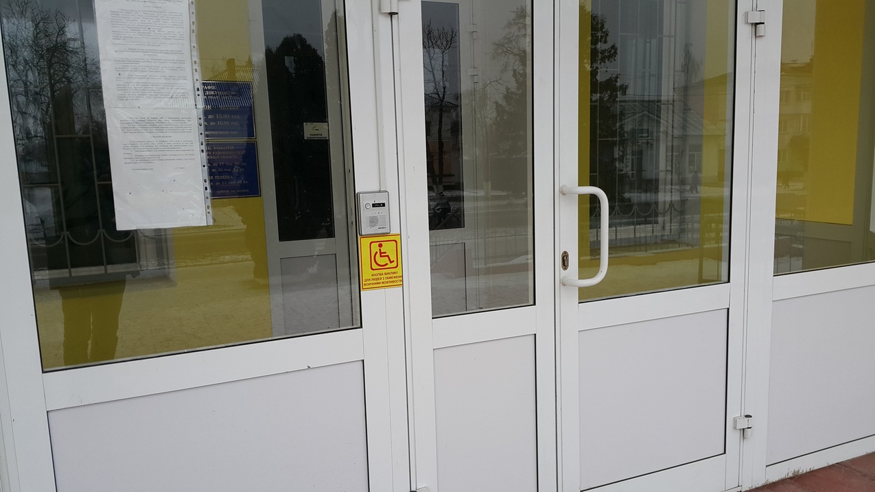 2.1. Вхід до приміщення суду обладнаний з урахуванням державних будівельних норм, будівель, приміщень судів пандусами і кнопкою виклику з переговорним пристроєм.