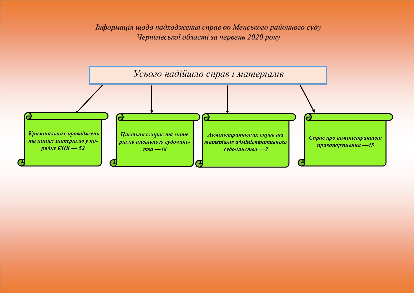 Інформація щодо надходження справ до Менського районного суду Чернігівської області за червень 2020 року