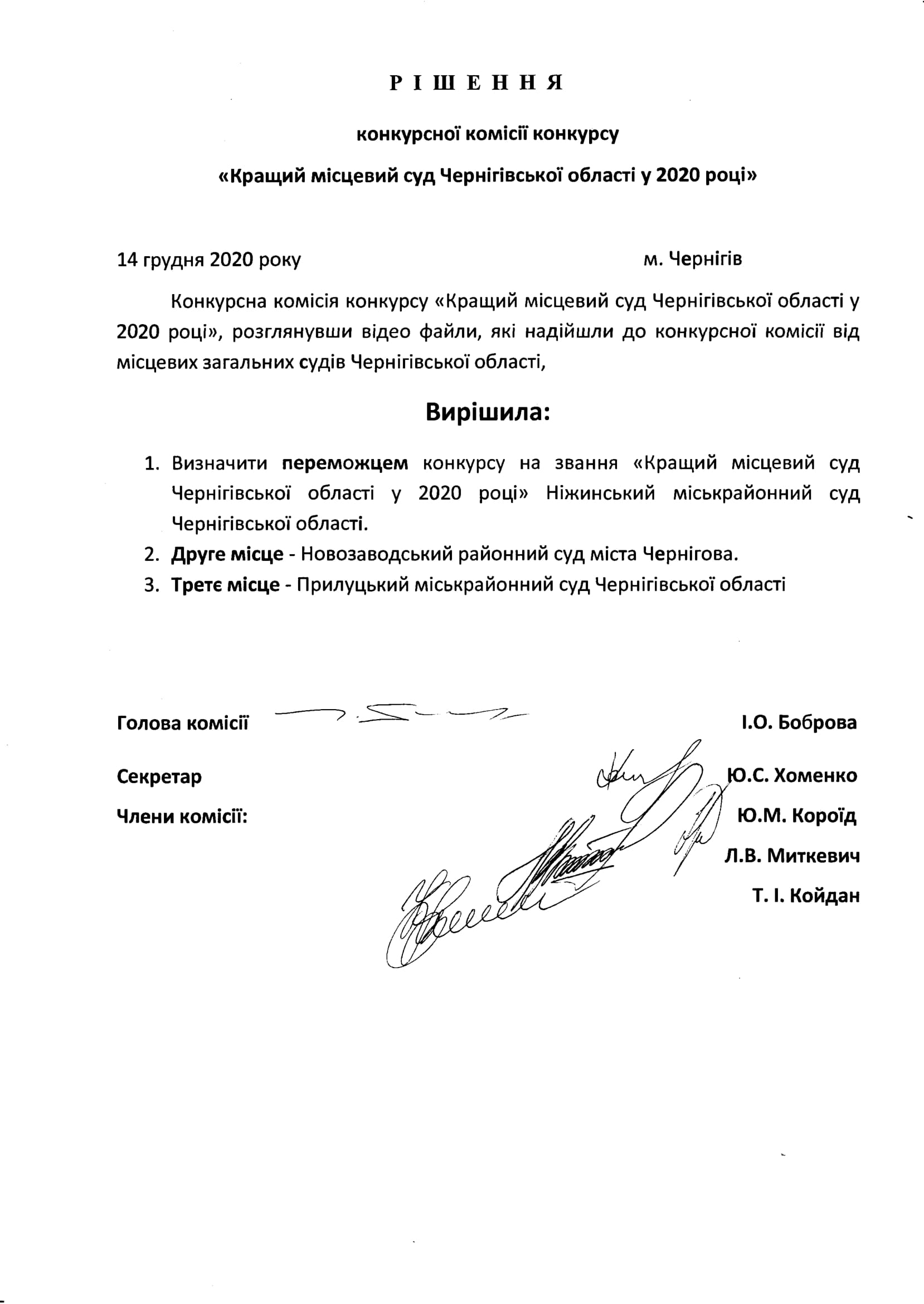 За результатами конкурсу «Кращий місцевий суд Чернігівської області у 2020 році» Новозаводський районний суд міста Чернігова зайняв друге місце.
