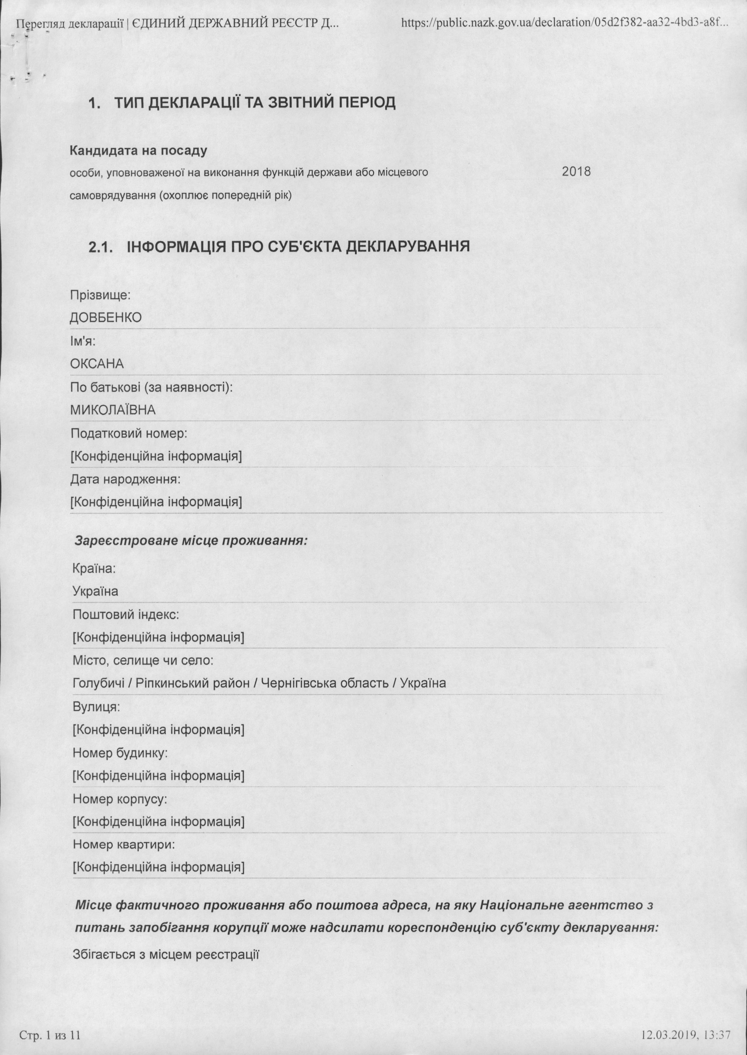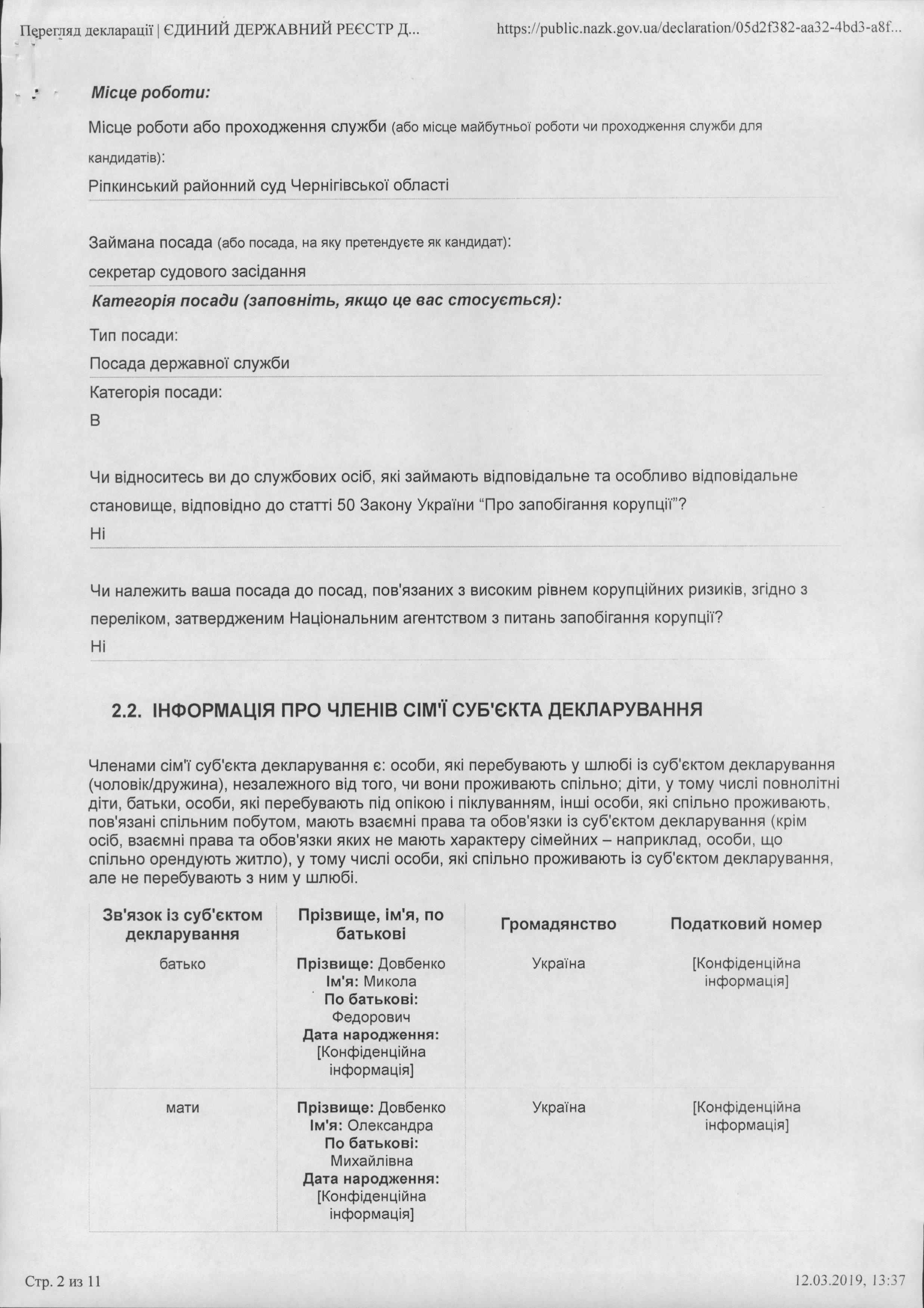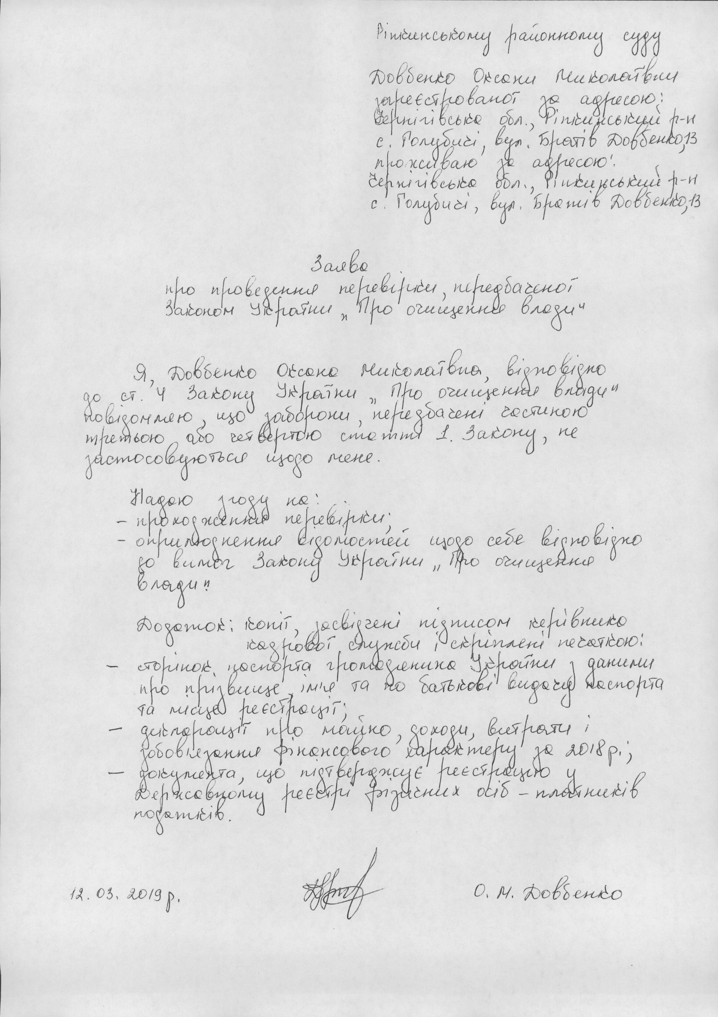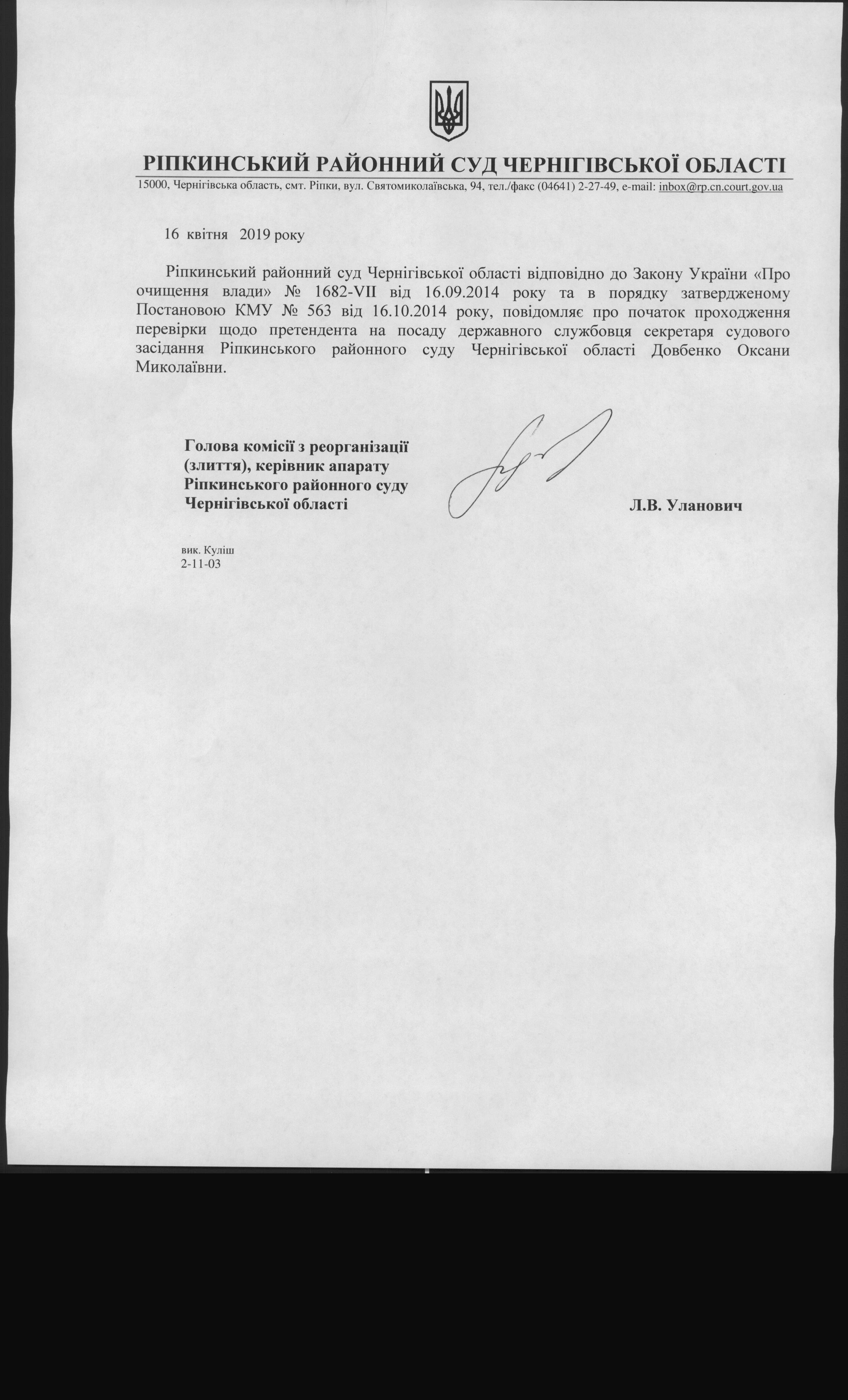 Інформація про початок проходження перевірки державним службовцем Довбенко О.М.