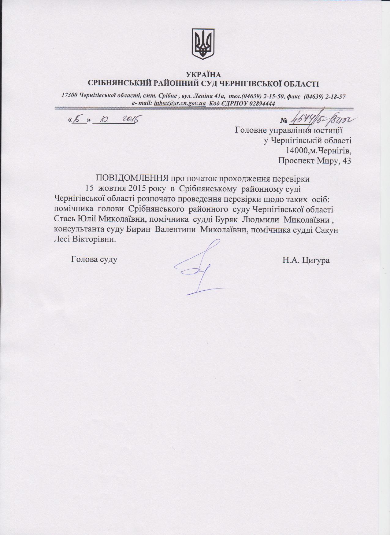 Срібнянський районний суд Чернігівської області