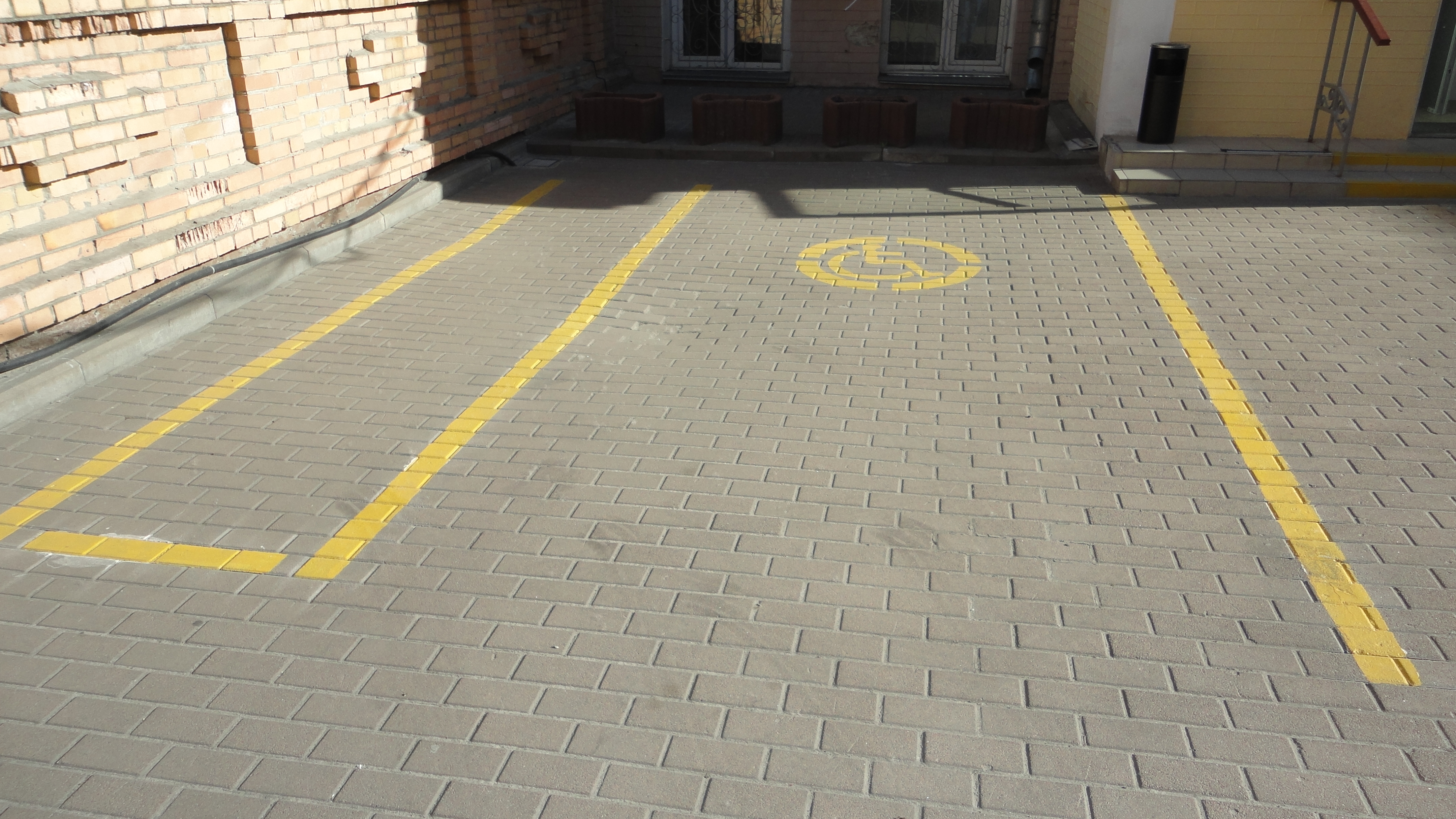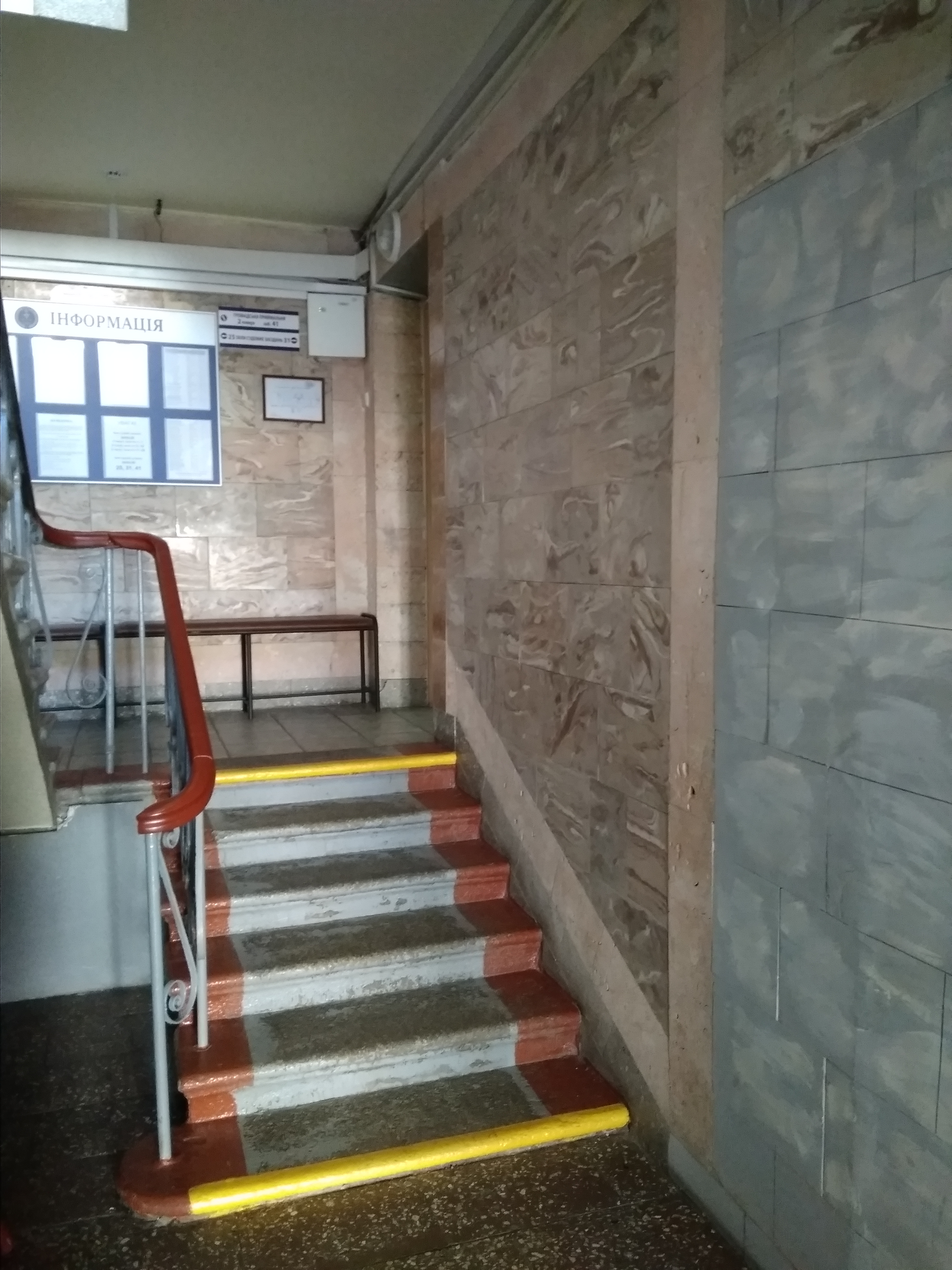Маркування спеціальною жовтою фарбою на сходах та сходових майданчиках