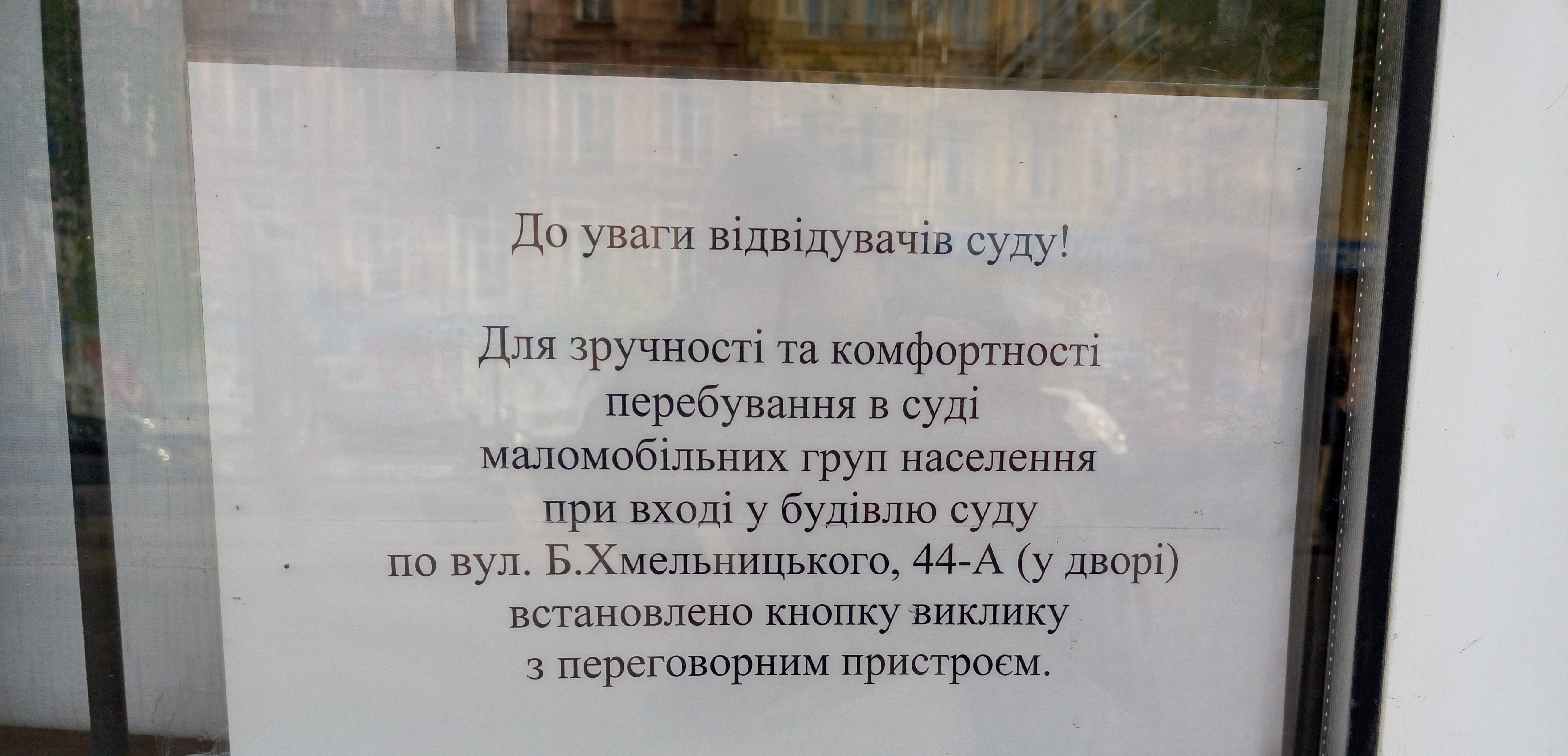 Вхід до канцелярії у будівлі суду по вул. Б.Хмельницького №44-А