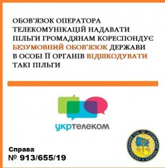 ПАТ «Укртелеком» в особі Харківської філії звернулося до Господарського суду Луганської області з позовом, у якому просило суд стягнути заборгованість з відшкодування вартості наданих послуг зв’язку пільговим категоріям населення смт. Новопсков та Новопсковського району Луганської області (за січень-червень 2019 року) з місцевого структурного підрозділу соціального захисту населення.