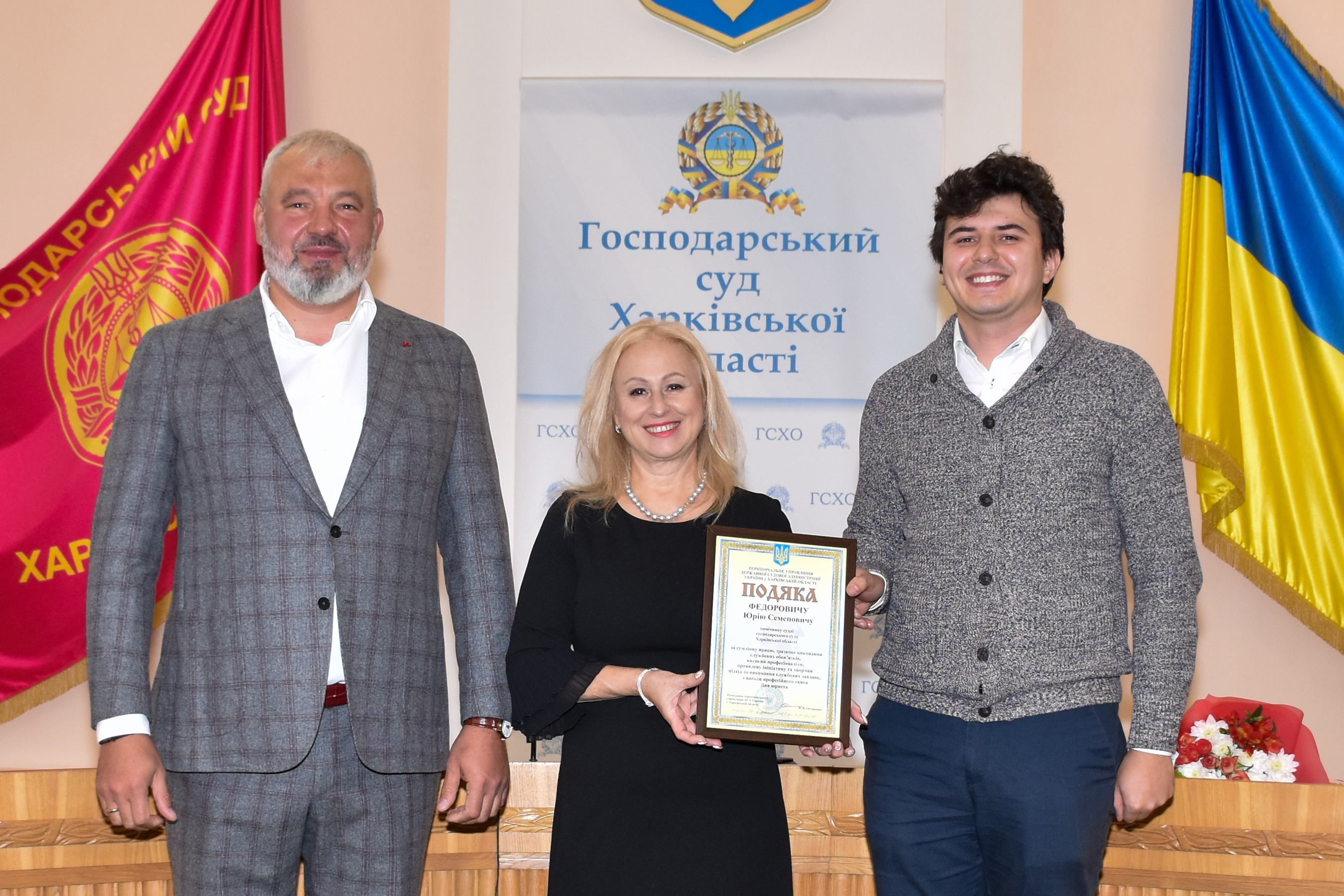8 жовтня 2021 року колектив апарату суду з нагоди професійного свята – Дня юриста привітали голова Господарського суду Харківської області Усатий Віталій Олександрович разом з суддею Господарського суду Харківської області Смірновою Оленою Володимирівною. Керівництво суду нагородило грамотами та подяками за зразкове виконання службових обов’язків працівників суду. Побажали успіхів та професійних перемог, благополуччя, щастя, міцного здоров’я, родинного добробуту, творчої наснаги та втілення нових задумів!