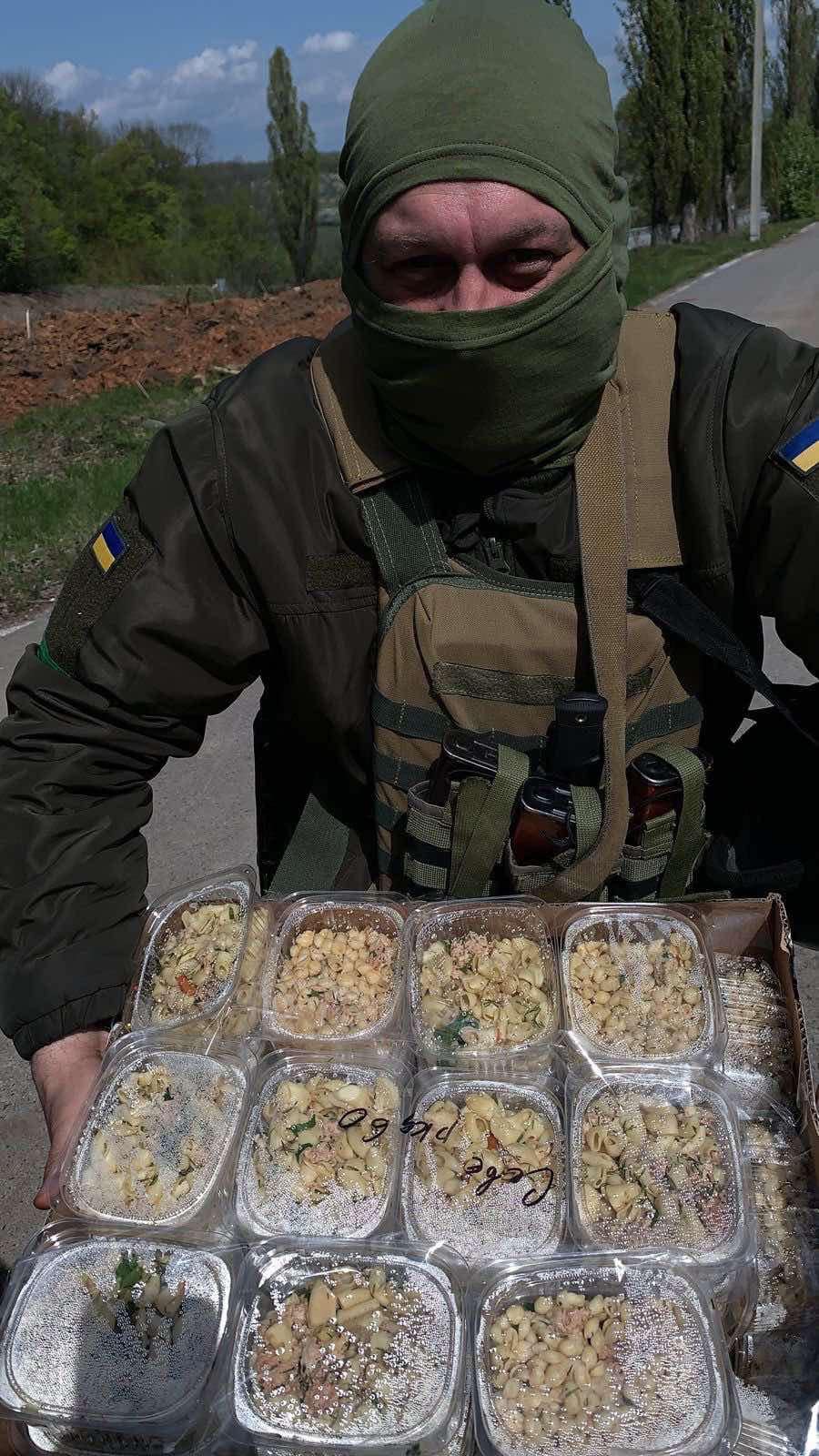 Бійцям надають продукти харчування, необхідні речі та організовують роздачу готових гарячих обідів.