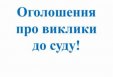 01 жовтня 2018, 15:30Інформація про виклик у судове засідання по справі № 925/1886/15