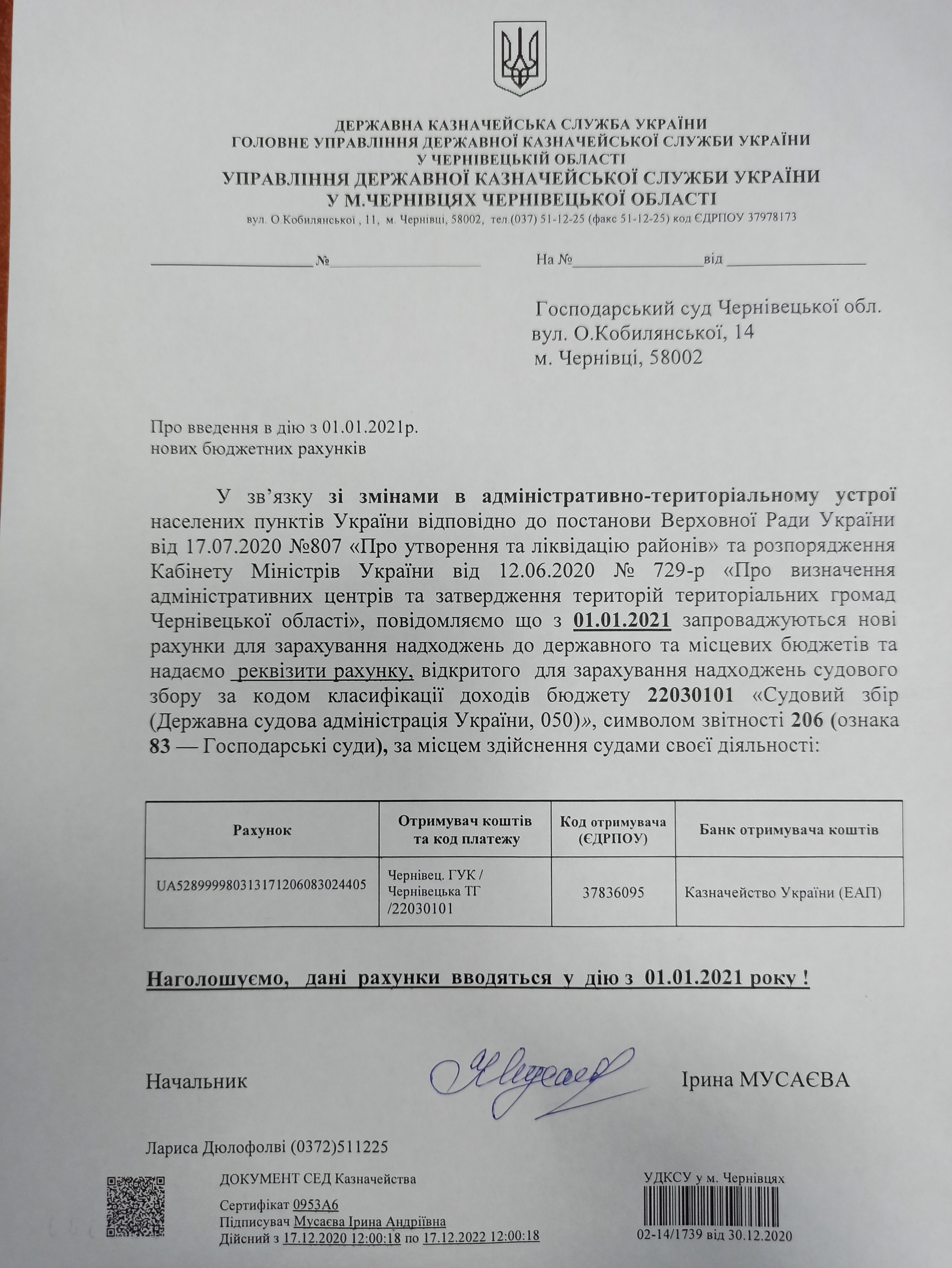 У зв’язку зі змінами в адміністративно-територіальному устрої населених пунктів України з 01.01.2021 змінюються реквізити рахунків для зарахування надходжень до державного та місцевих бюджетів відповідно до стандарту IBAN.