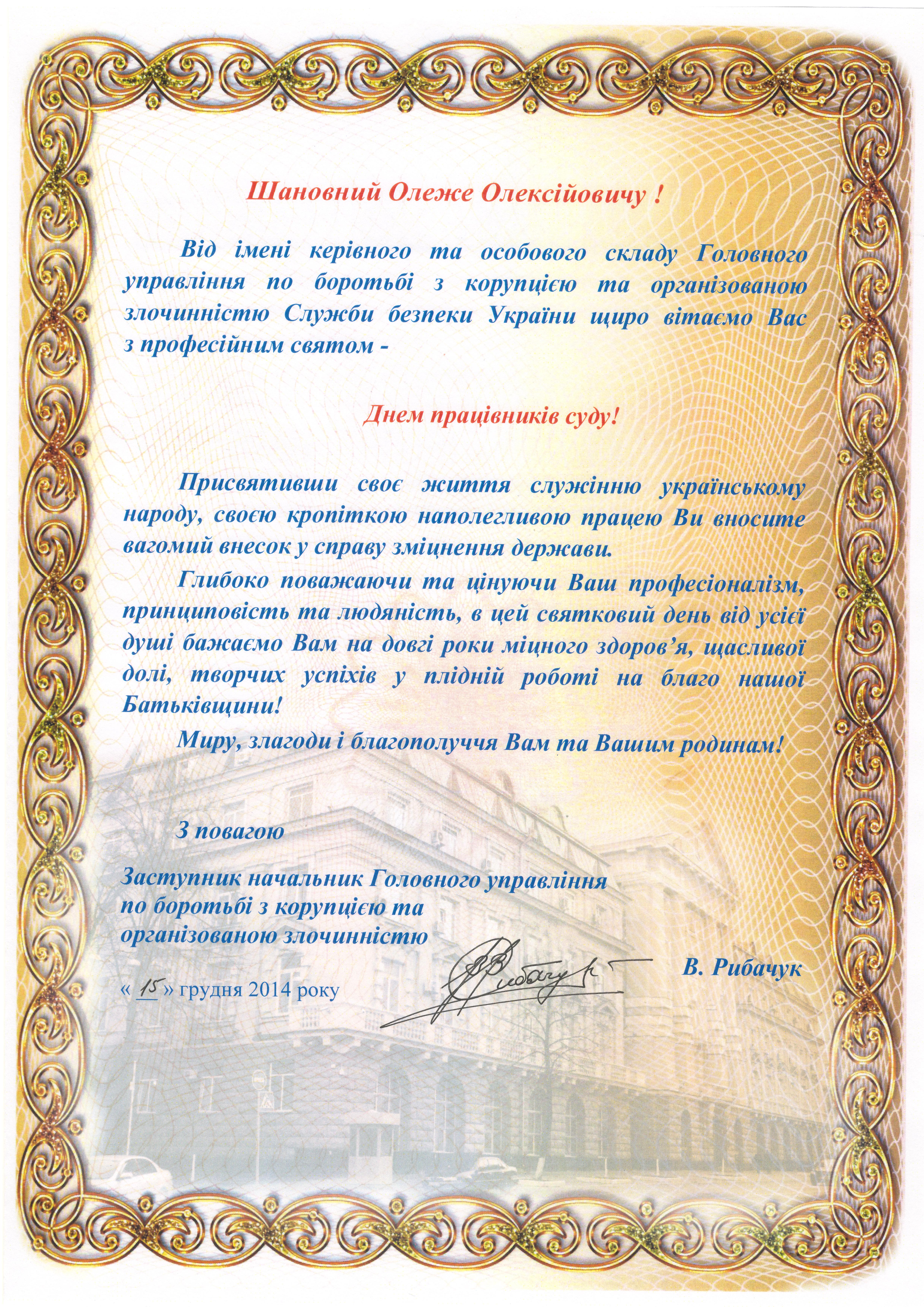 З нагоди Дня працівників суду на адресу Київського апеляційного господарського суду надійшов ряд привітальних листів.