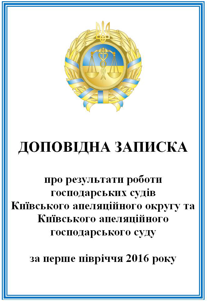Київським апеляційним господарським судом підготовлено та надіслано до Вищого господарського суду України Доповідну записку про результати роботи господарських судів Київського апеляційного округу та Київського апеляційного господарського суду за перше півріччя 2016 року.