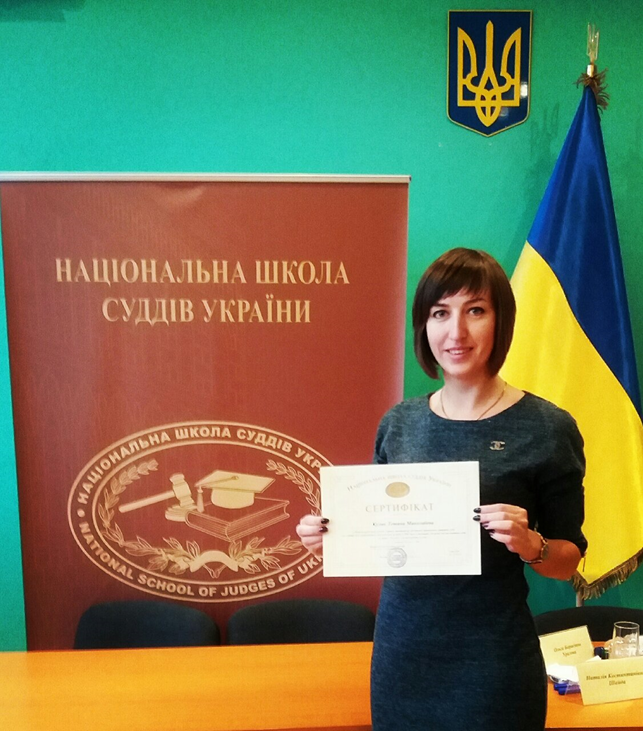 Після завершення заходу Тетяні КУЛИК вручено Сертифікат Національної школи суддів України.