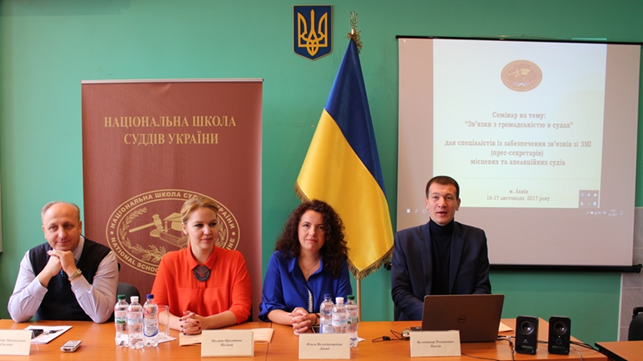 Відкриваючи захід, директор Львівського регіонального відділення Оксана ПОЛЬНА повідомила, що семінар такої тематики для працівників апаратів судів є підсумковим у поточному році. Директор висловила сподівання на досягнення бажаного результату, а саме зміцнення авторитету суду шляхом налагодження комунікації між судами та представниками ЗМІ та представила викладачів – суддю Львівського окружного адміністративного суду, члена Ради суддів України Олександра САСЕВИЧА, суддю, голову Миколаївського районного суду Львівської області Володимира ПАВЛІВА, прес-секретаря Господарського суду Львівської області Наталію ШАЙДУ, фахівця-експерта з комунікацій у системі правосуддя Ольгу ДАВИД та психотерапевта Ольгу УРАЛОВУ.