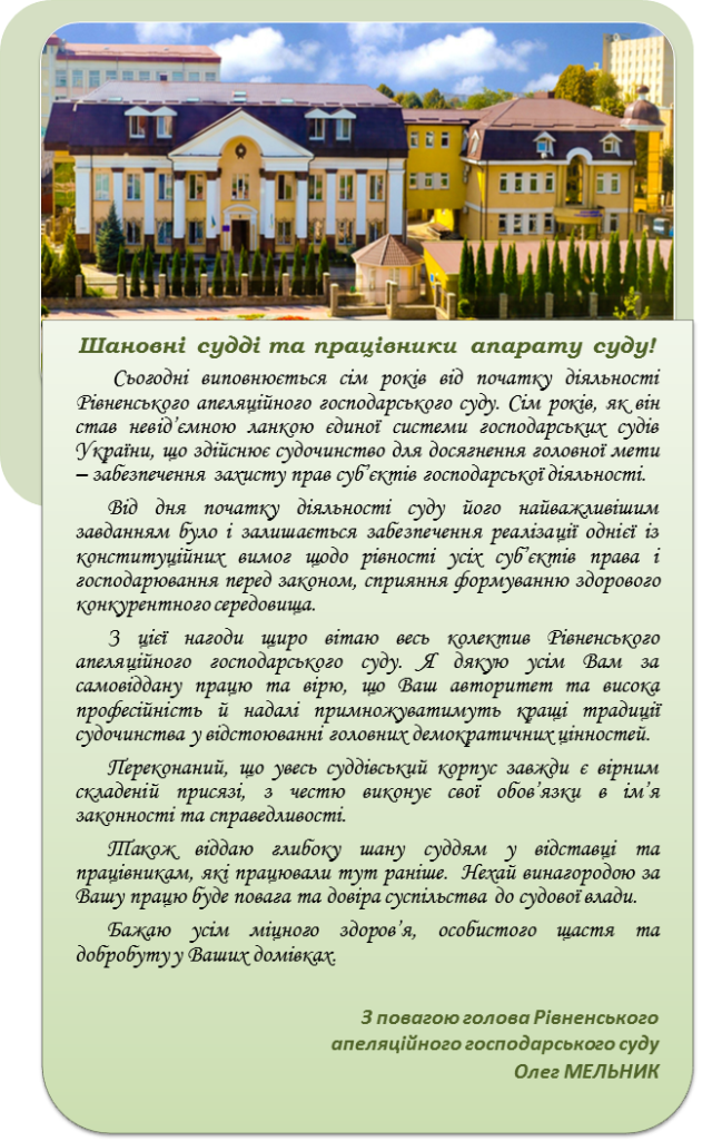 Вітання Голови суду Олега МЕЛЬНИКА з нагоди 7-ї річниці початку діяльності РАГС