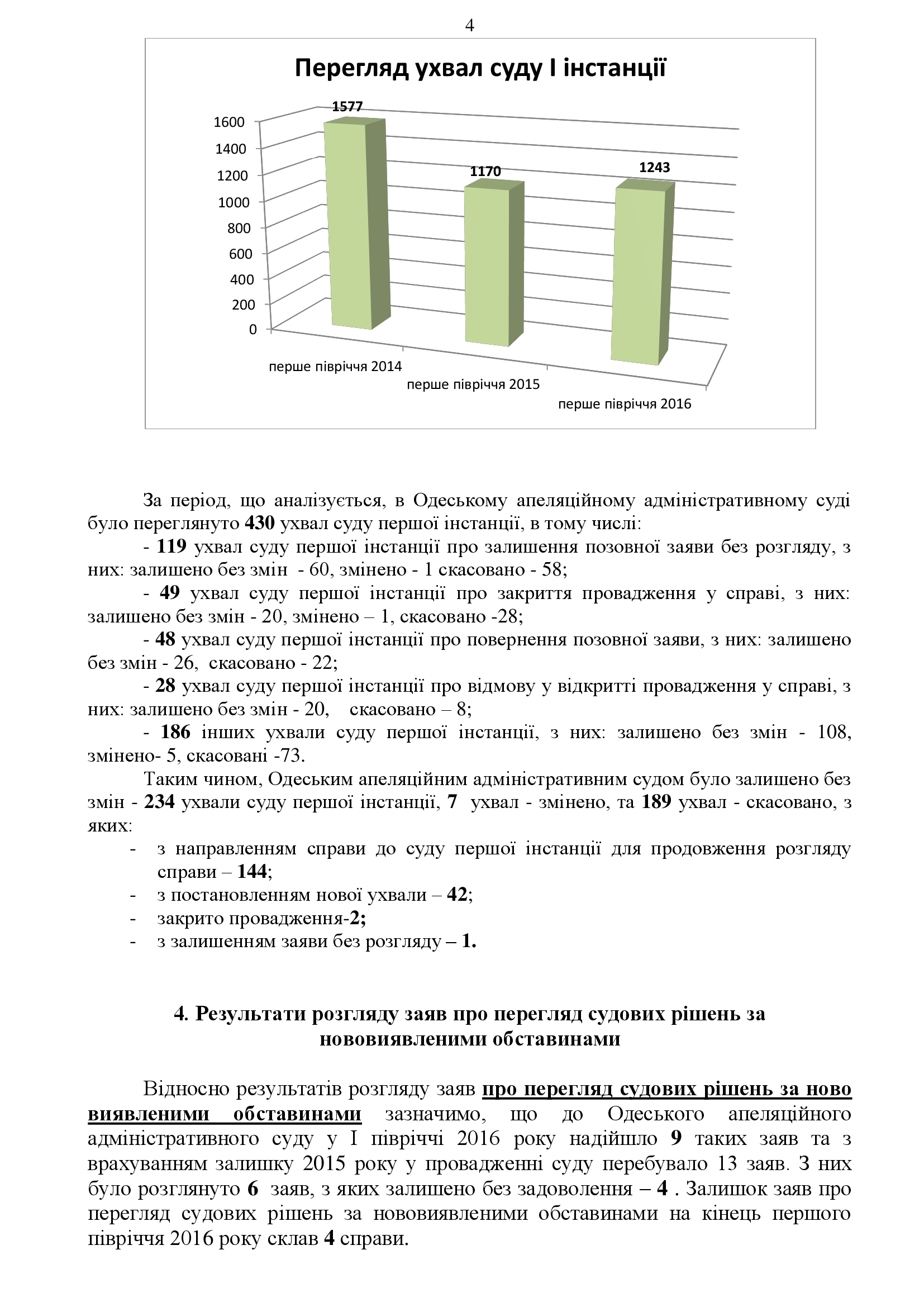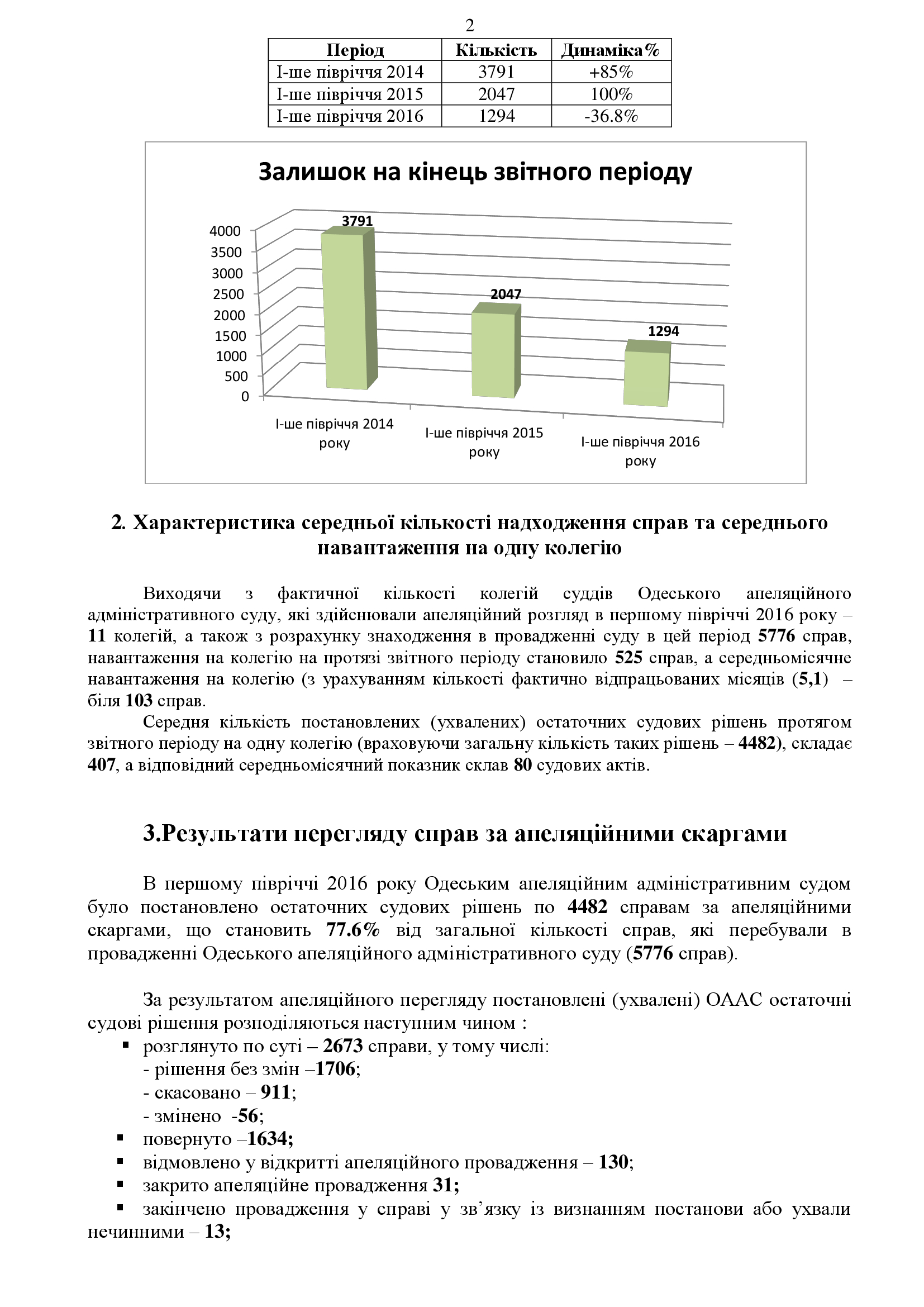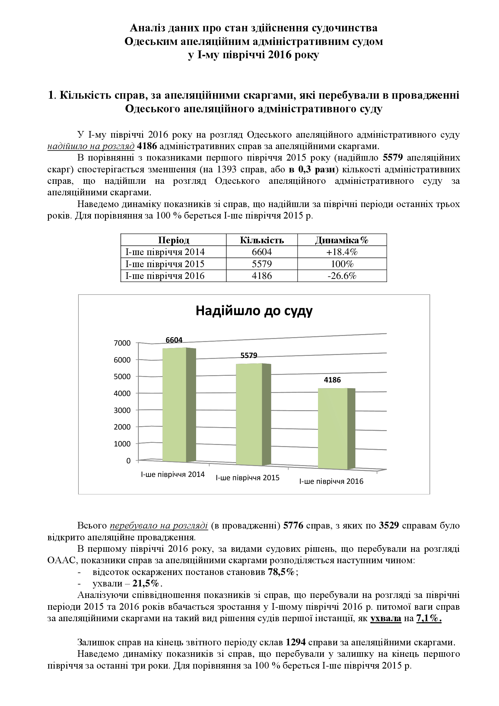 Інформація про основні показники здійснення судочинства Одеським апеляційним адміністративним судом за 1-ше півріччя 2016 року