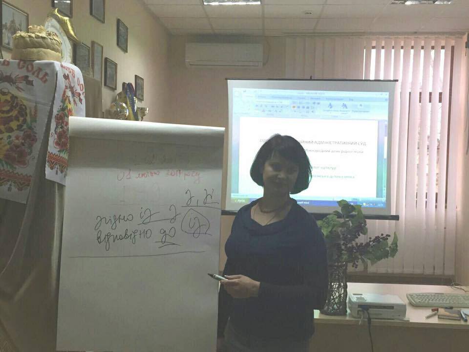 До проведення цього й подальших занять залучено старшого викладача кафедри української та іноземних мов, начальника відділу організації семінарів за договорами УКК ОРІДУ НАДУ при Президентові України Людмилу Шматоваленко. Під час семінару відбувся жвавий діалог між філологом та слухачами. Це підтвердило, що підвищення мовної культури - нагальна необхідність професійної діяльності працівників суду, а розвиток і вдосконалення мовної культури державних службовців є актуальним завданням сьогодення.
