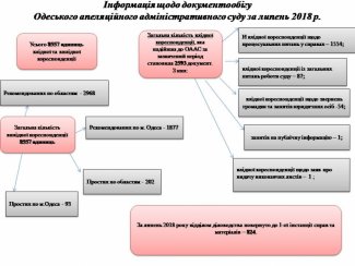Відповідно до вимог п.п.1.3.5-1.3.6 Інструкції з діловодства в адміністративних судах України, затвердженої наказом ДСА України від 17 грудня 2013 року № 174, відділом діловодства Одеського апеляційного адміністративного суду здійснено аналіз документообігу суду за липень 2018 року.