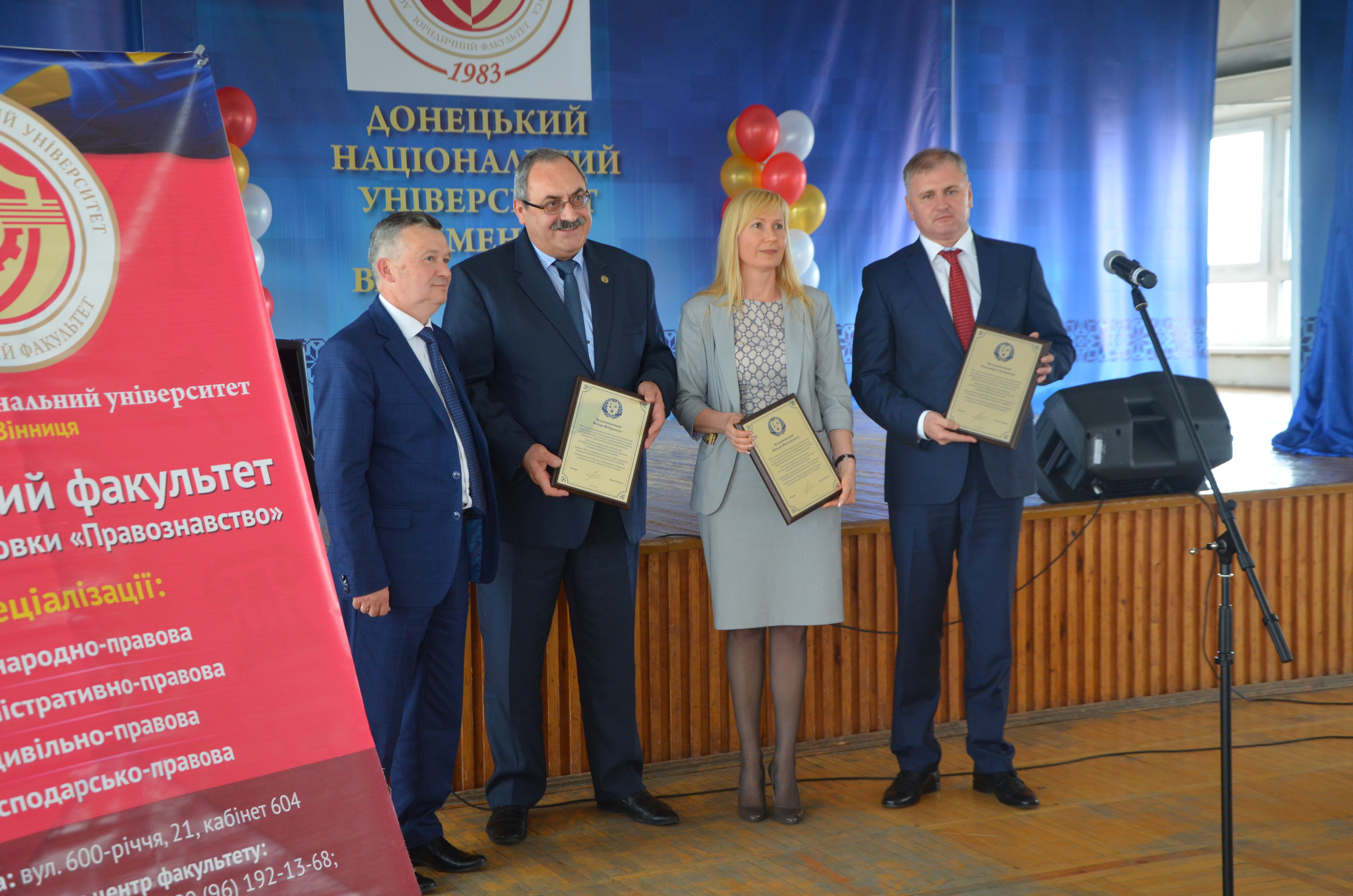 Варто відзначити, що суддя ВААС (за сумісництвом старший викладач ДонНУ) Андрій Загороднюк (Андрій Загороднюк), начальник відділу забезпечення діяльності голови суду та його заступника (за сумісництвом доцент ДонНУ) Олена Мілієнко (Елена Милиенко) та помічник судді ВААС (за сумісництвом старший викладач ДонНУ) Антоніна Пачевська(Антоніна Пачевська) завдяки своїй активній викладацькій діяльності стали частинкою факультетської родини і з нагоди ювілею були нагороджені.