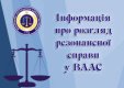 26 липня 2018, 16:30Інформація щодо розгляду резонансної справи у ВААС