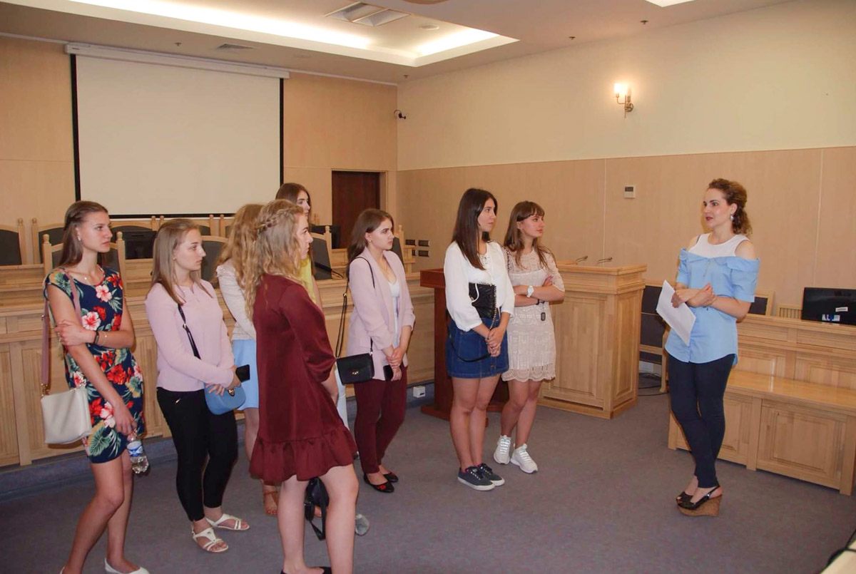У приміщенні Касаційного адміністративного суду відвідувачі ознайомилися з діяльністю структурних підрозділів цього суду. Спілкуючись із суддями Верховного Суду Іриною Желтобрюх та Ларисою Мороз, вони дізналися про особливості роботи офісу судді, підготовку справи до судового розгляду та навантаження на суддів. Студенти відвідали великий конференц-зал, зали судових засідань, бібліотеку суду, оглянули музейну експозицію.