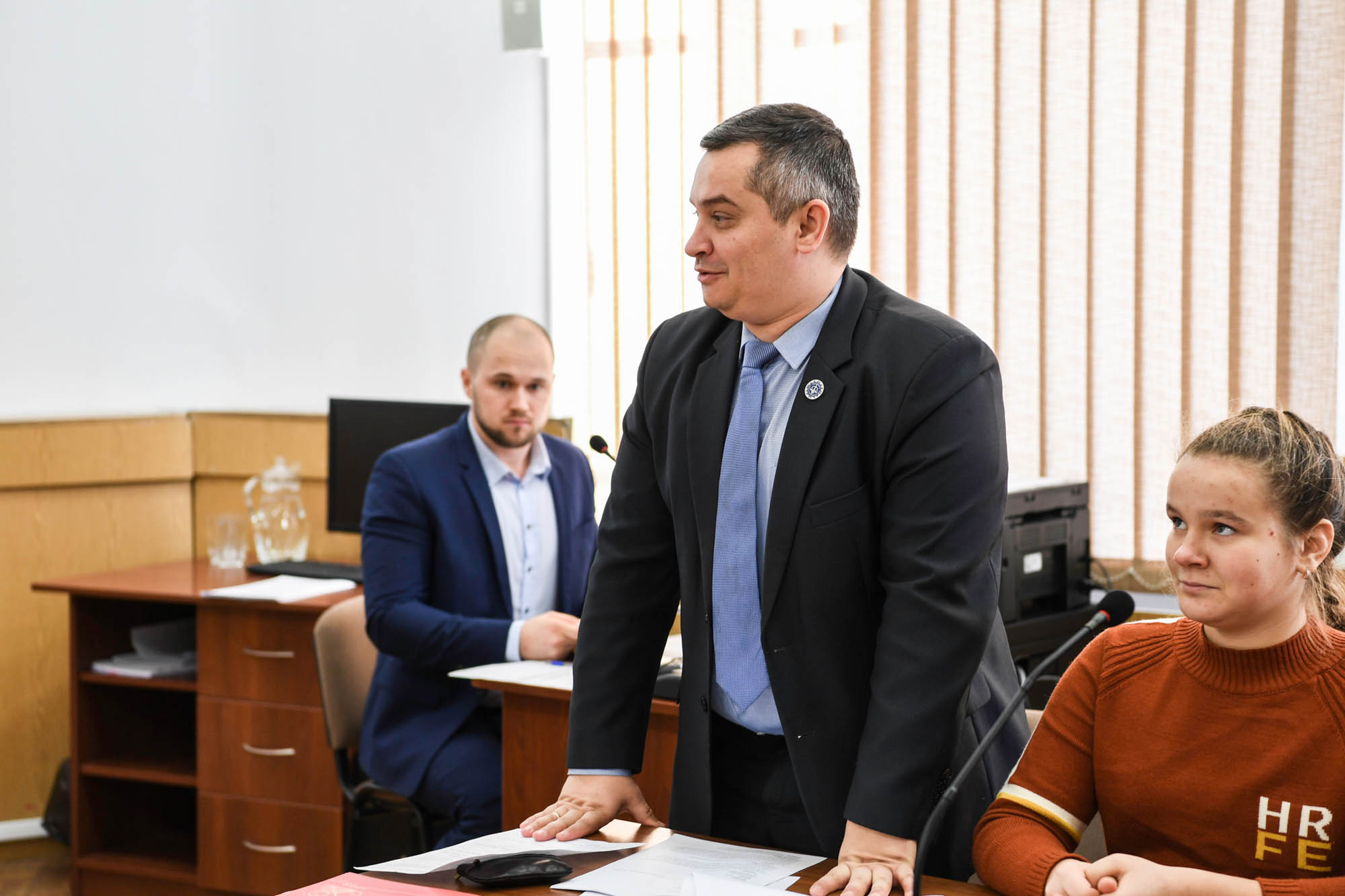 Сторону «позивача» представляв «прокурор» – суддя КЦС ВС Євген Петров, «відповідача» захищав «адвокат» – суддя КЦС ВС Сергій Бурлаков. Учні та студенти брали участь у засіданні як стажери «адвоката» і «прокурора».
