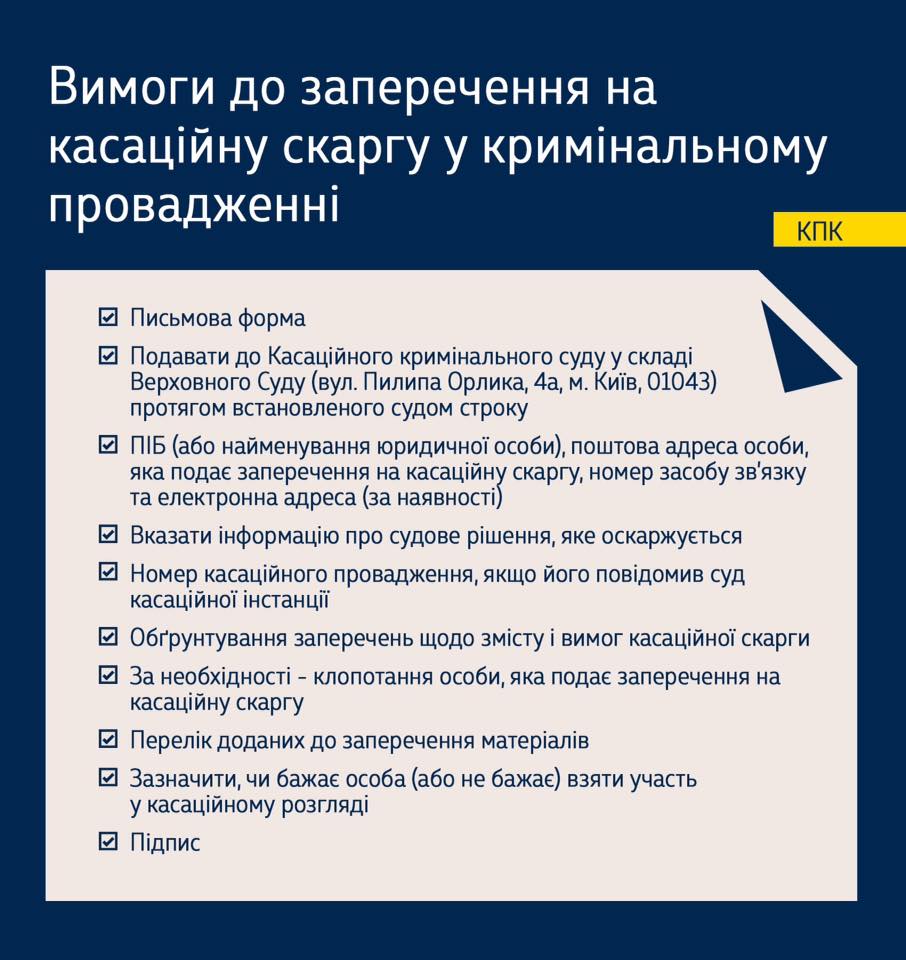 Вимоги до заперечення на касаційну скаргу у кримінальному провадженні